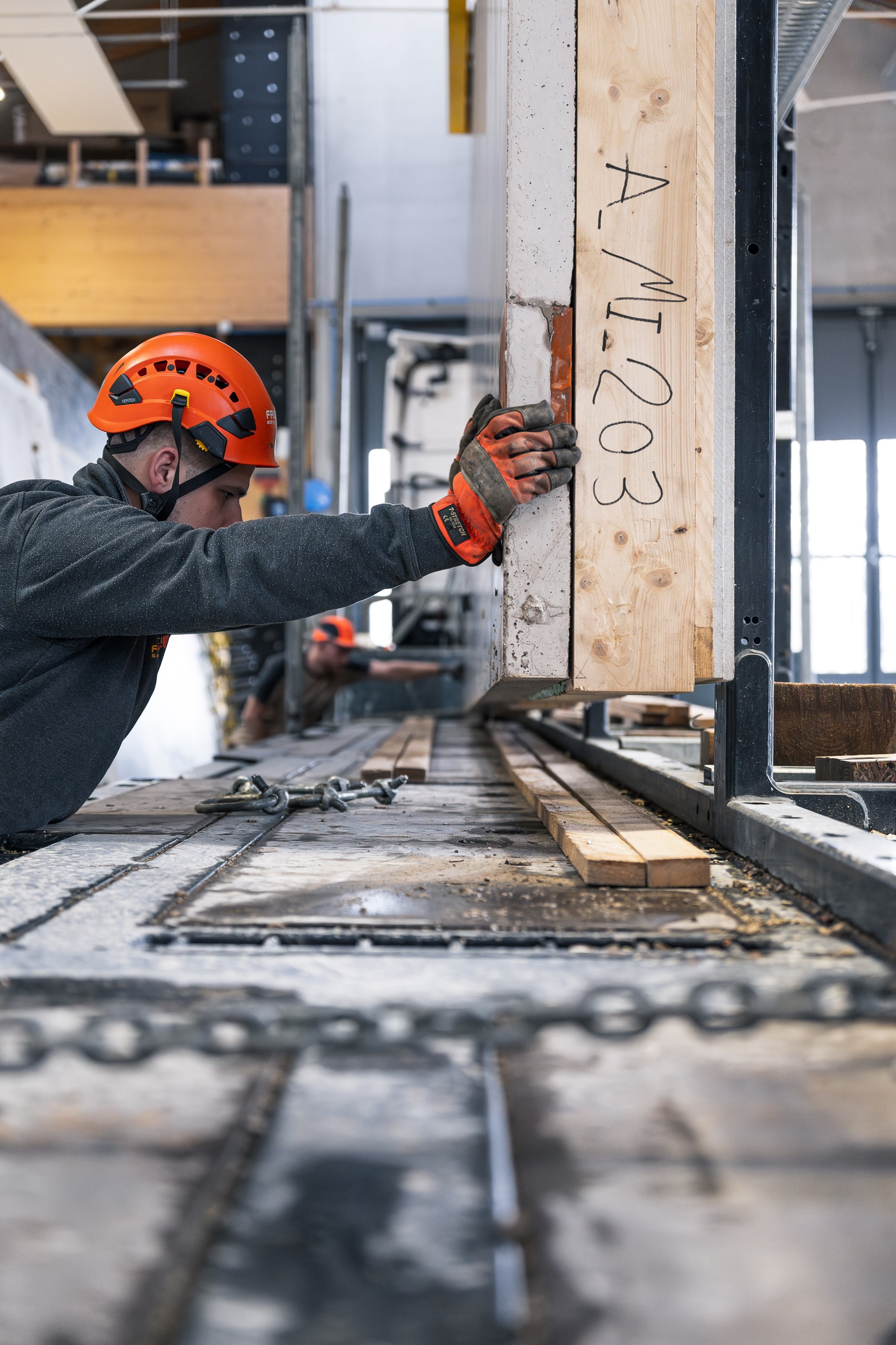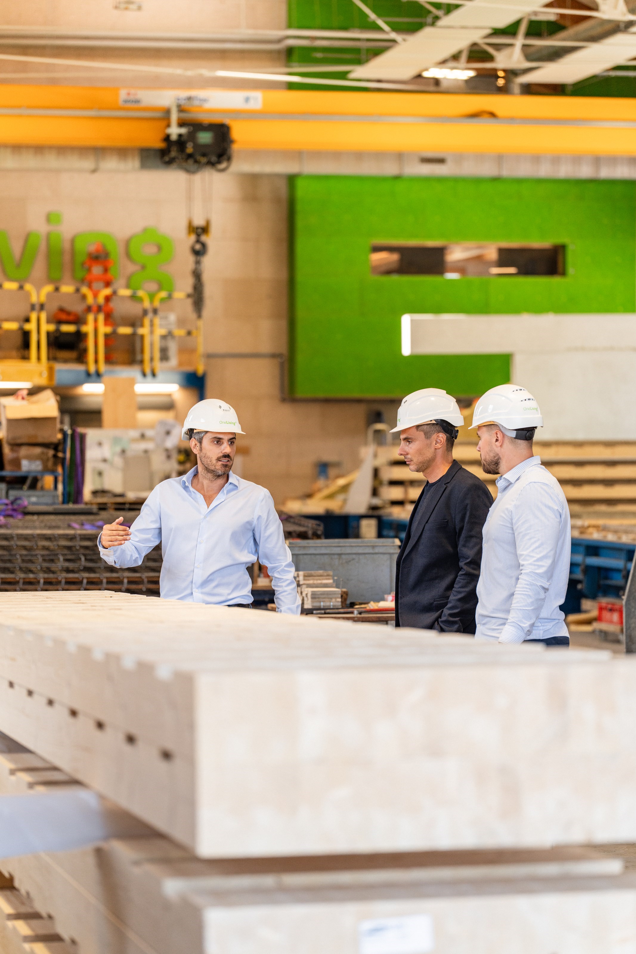 Fruit de plusieurs années de recherche, ce produit unique associe le bois local et le béton décarboné dans des modules préfabriqués hors-site, prêts à assembler.